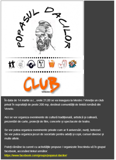 Un club privat în suprafață de peste 200 mp, destinat comunității de limbă română din Veneto.